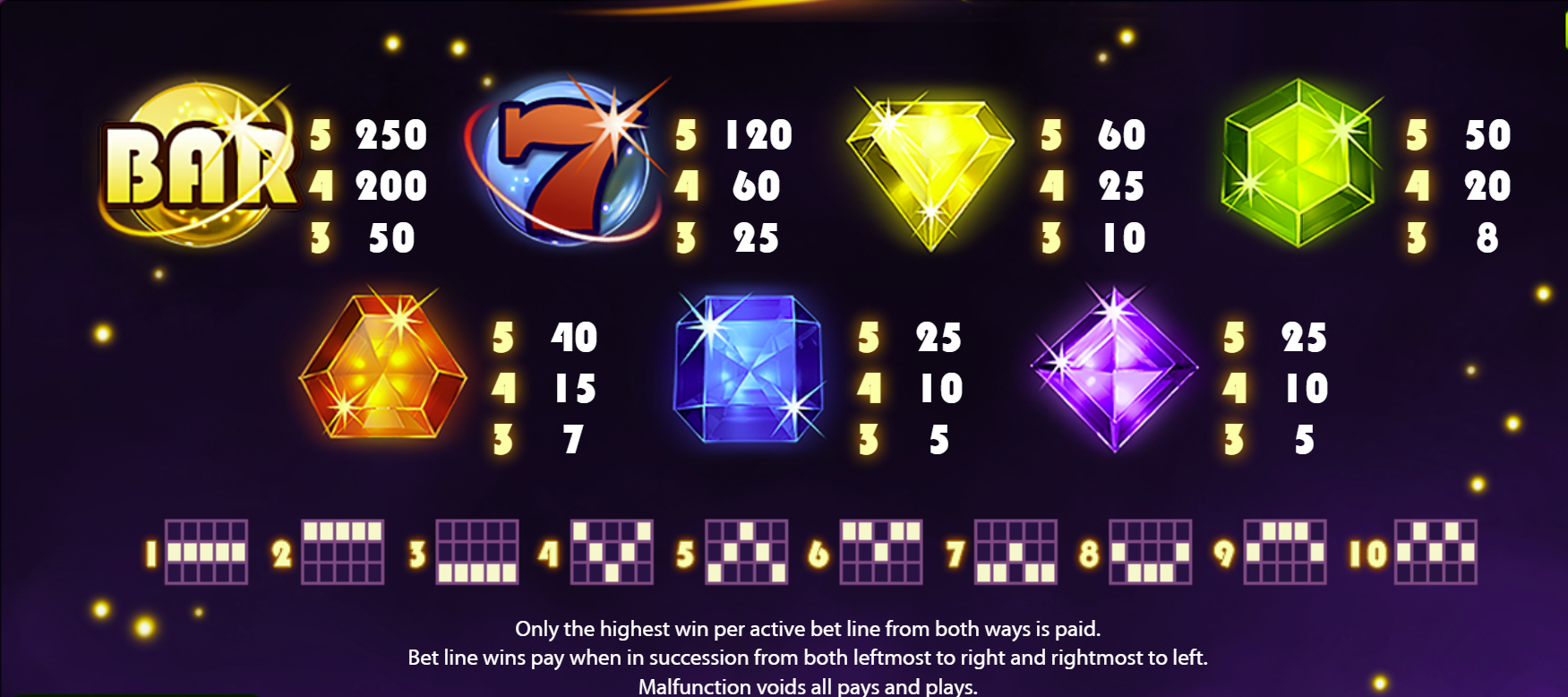 Immerse yourself in a cosmic backdrop where vibrant jewels float against a starry nebula. Each spin illuminates the reels with sapphires, emeralds, and rubies that shimmer with arcade-style brilliance, complemented by satisfying gem-cascade animations during winning sequences.